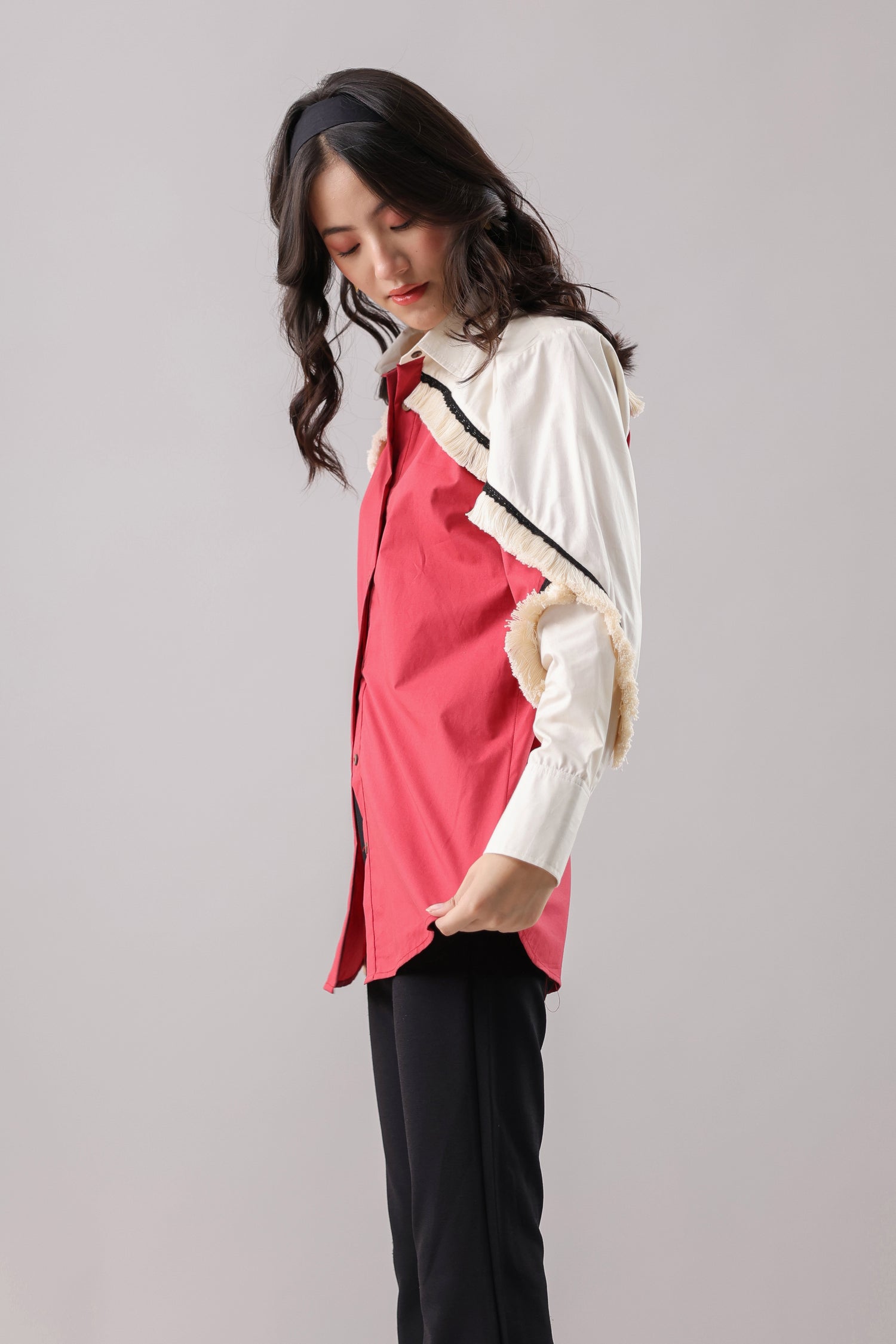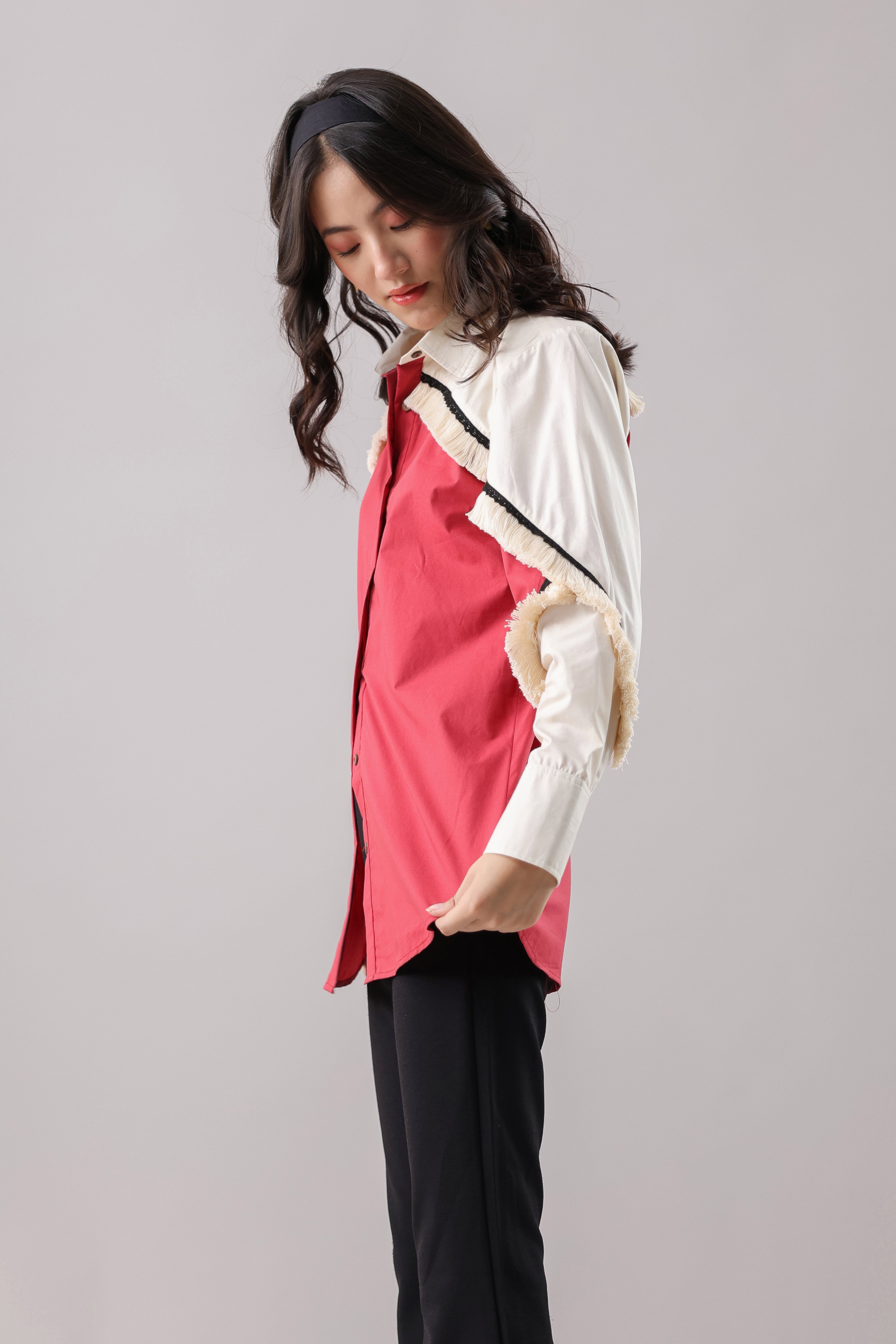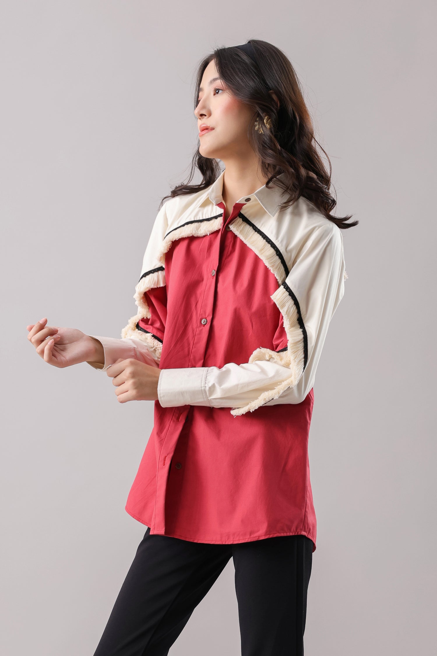 Colour-block shirt in regular fitting. Featuring lace combination details, a lapel collar and long sleeves. Button-up front.
