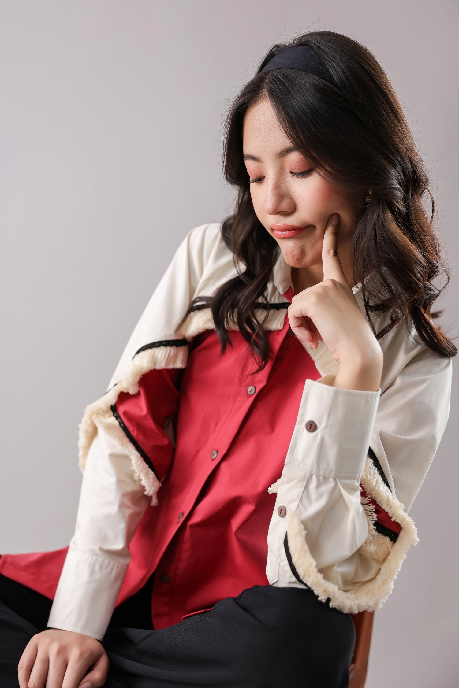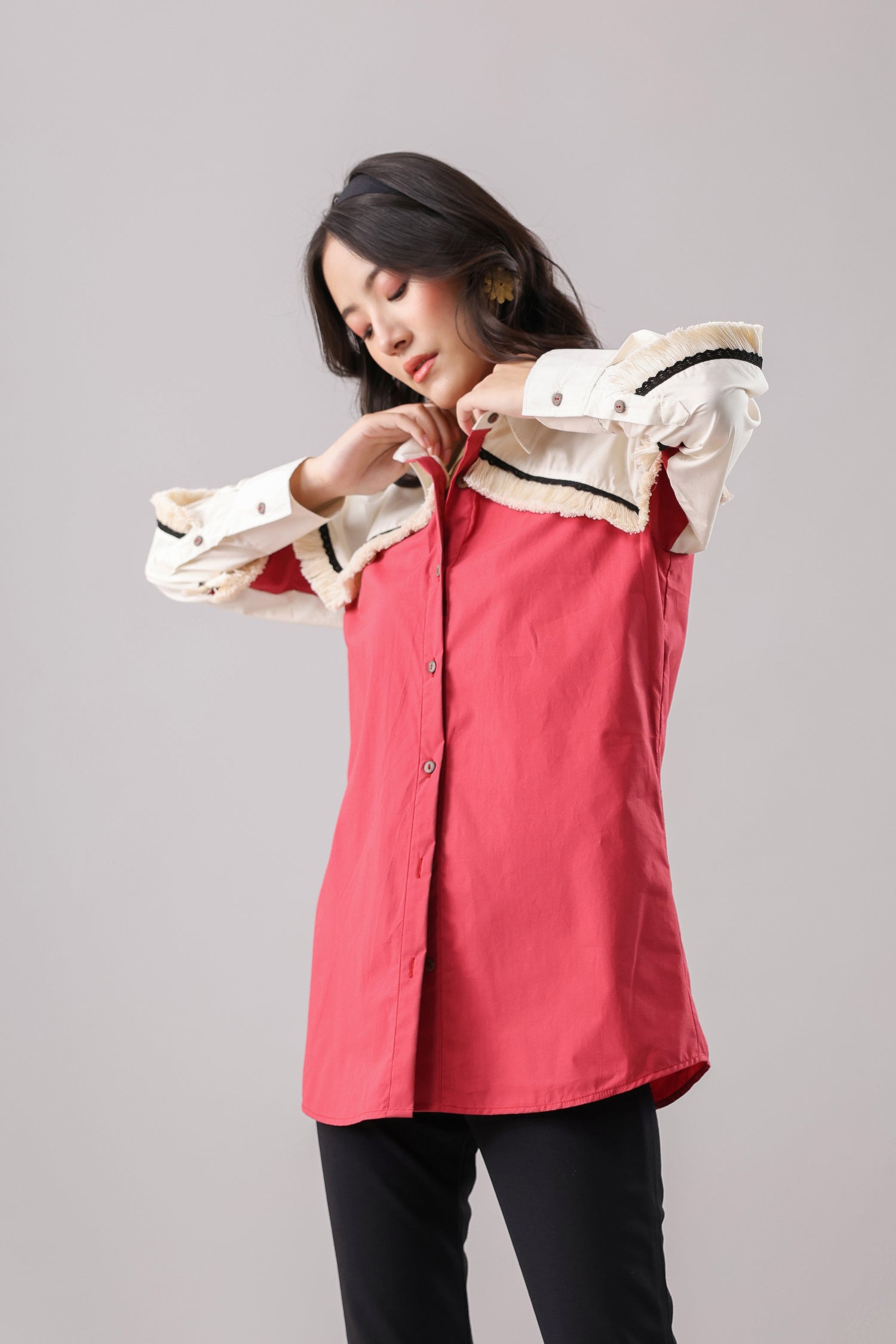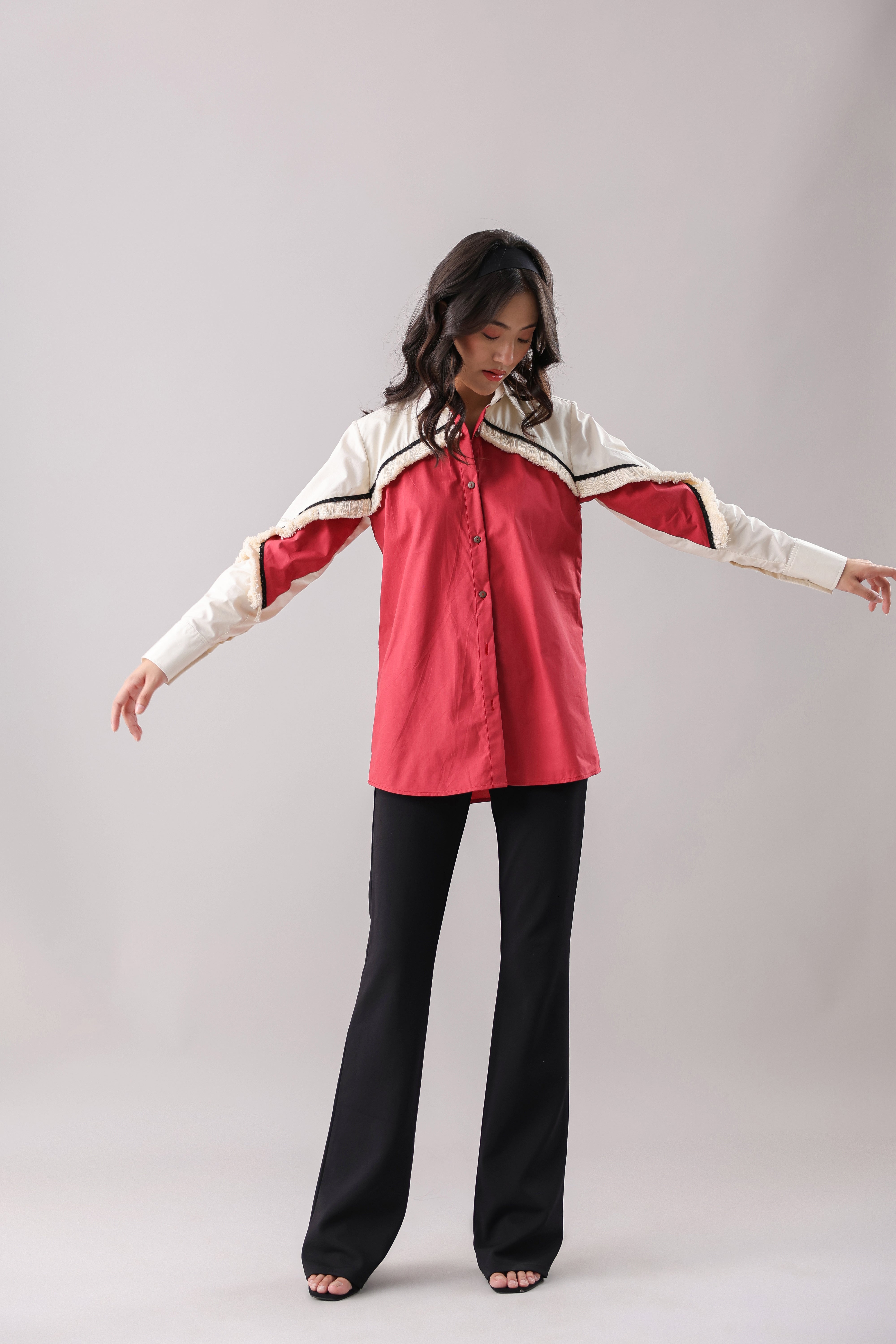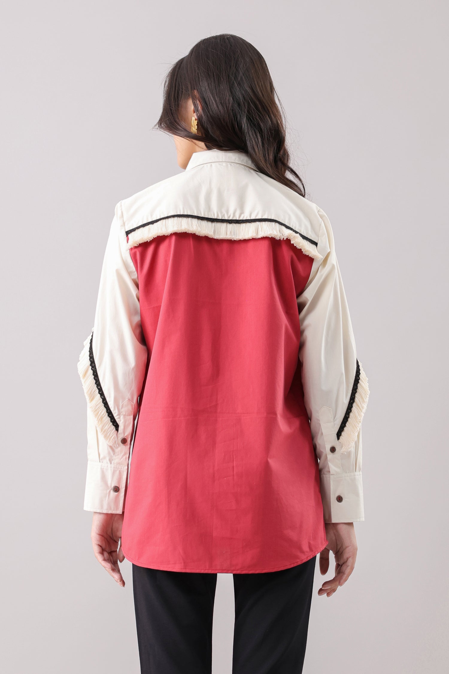 Colour-block shirt in regular fitting. Featuring lace combination details, a lapel collar and long sleeves. Button-up front.
