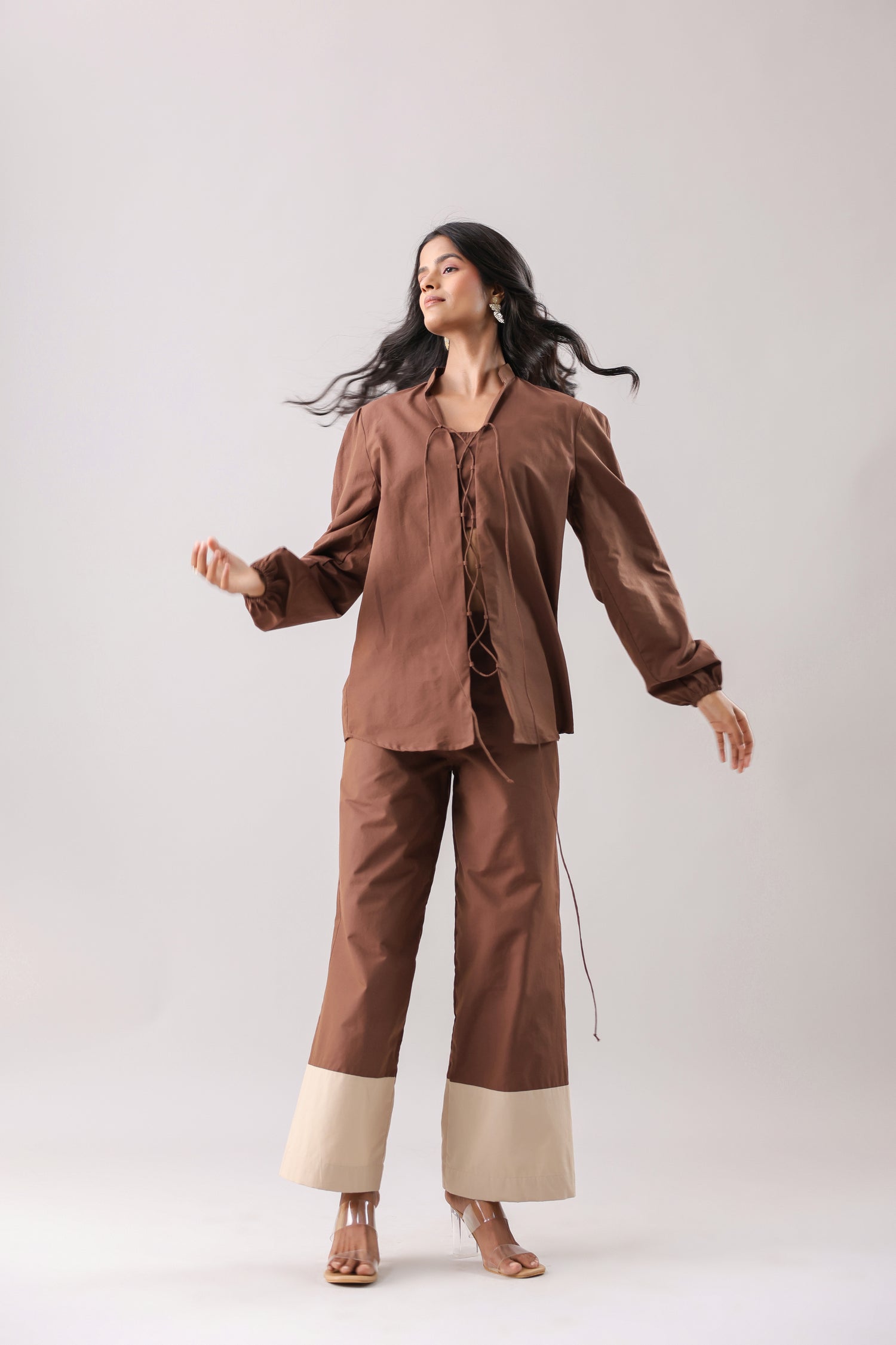 In the photos we have Tanvi wearing the co-ord set- size S, height 172 cm.