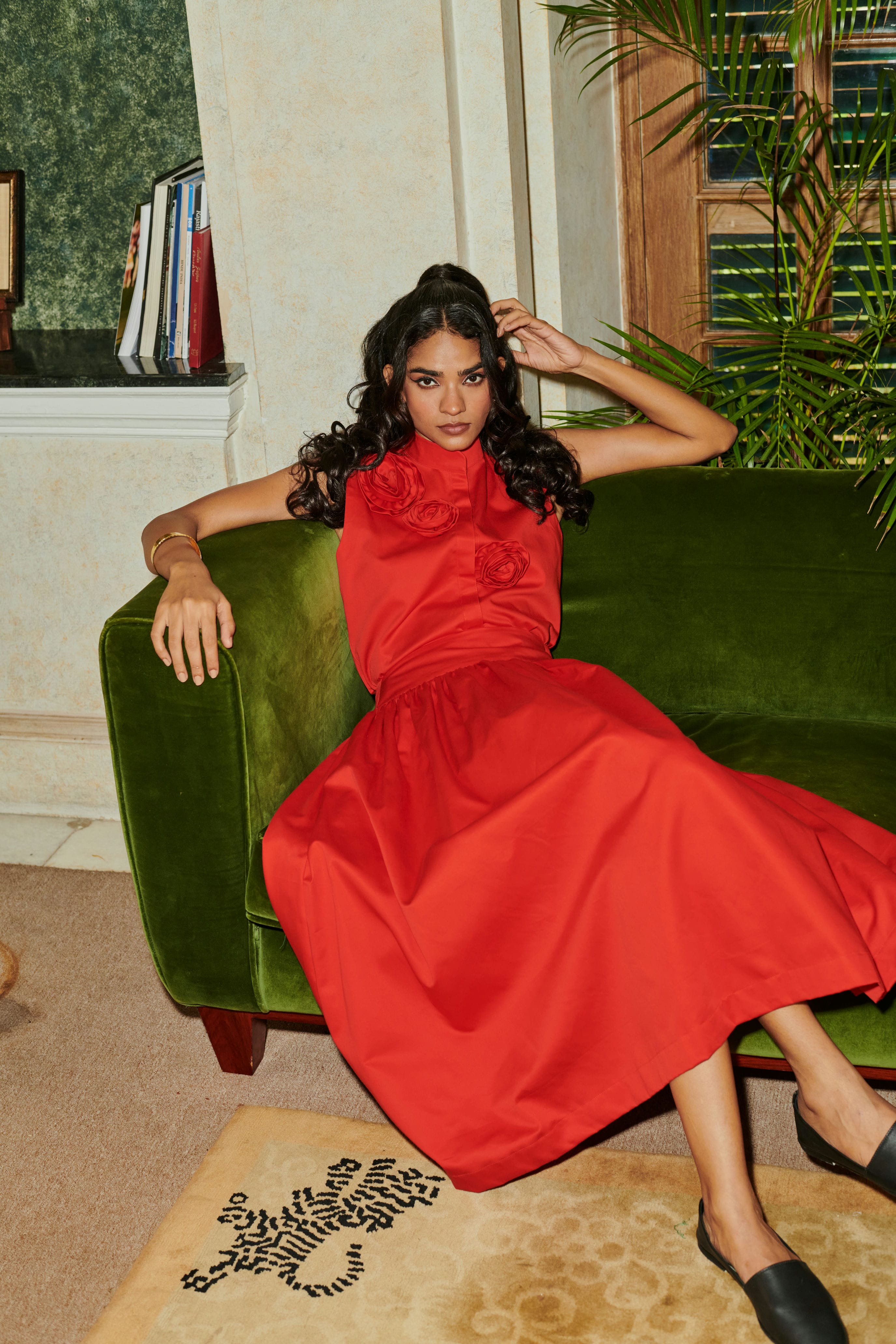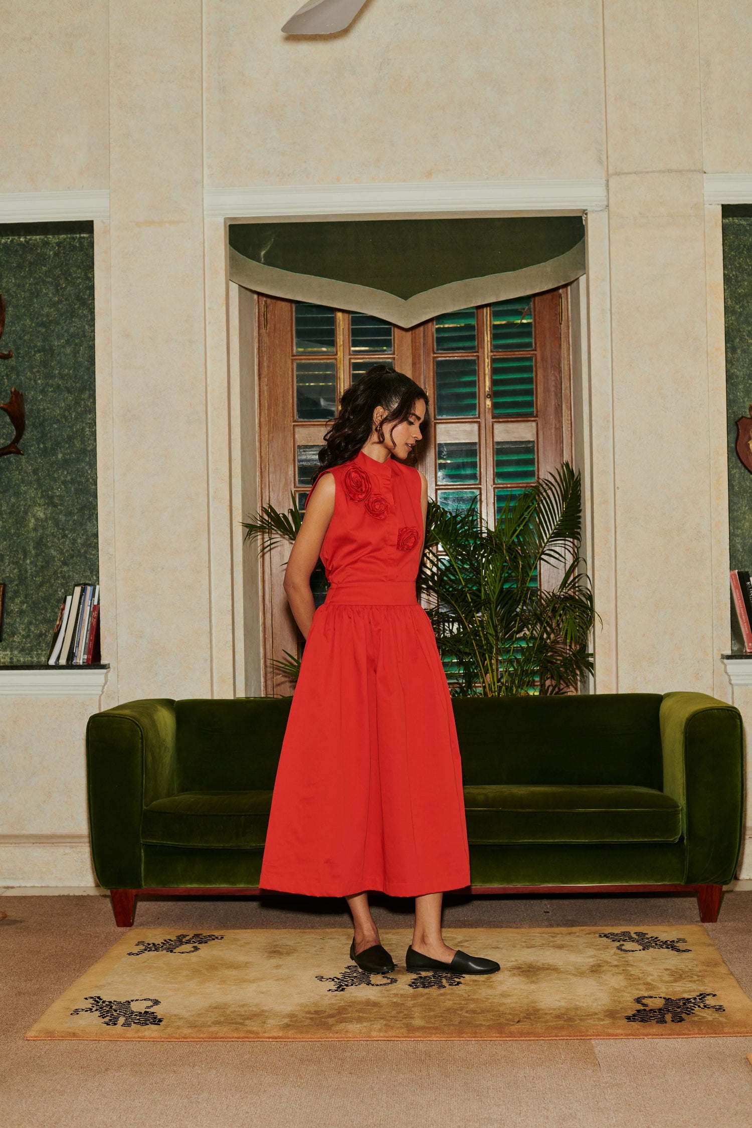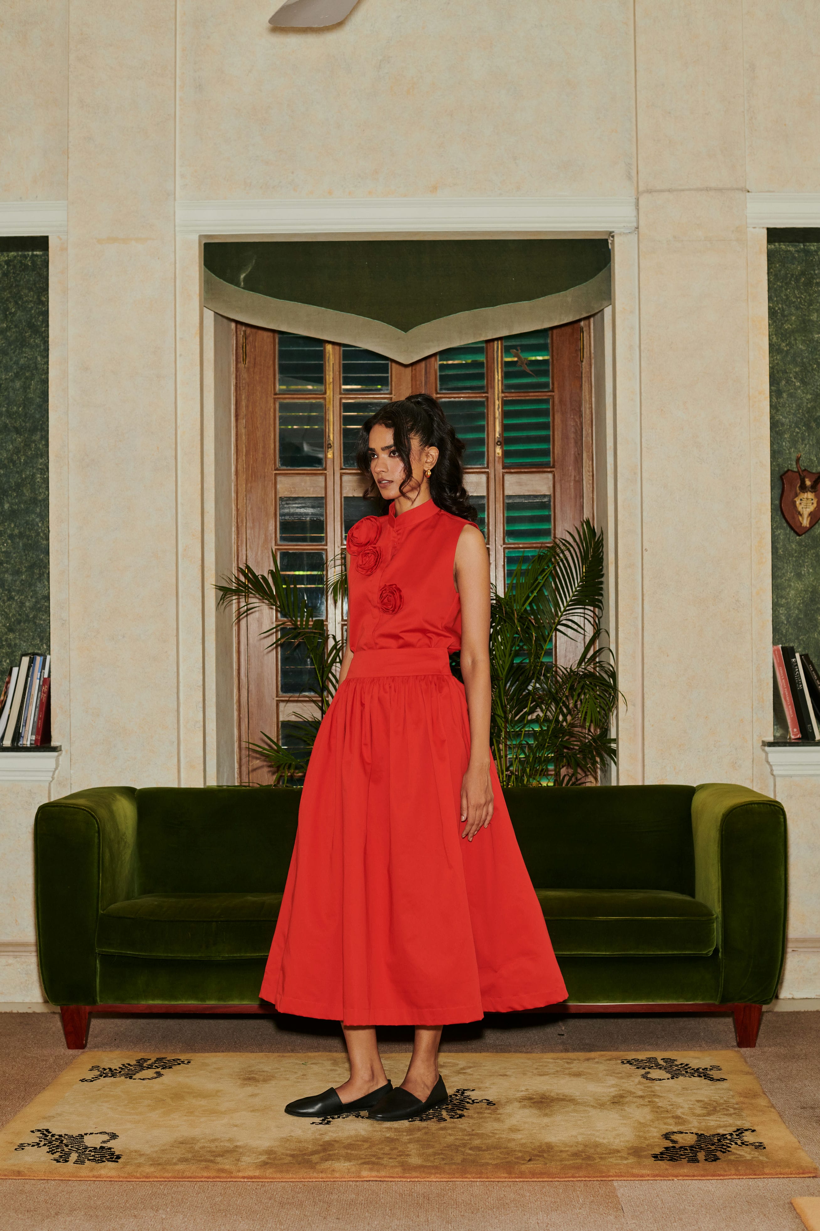Regular fit sleeveless shirt featuring florets. Mandarin collar with a concealed front button-fastening with rose-gold buttons.