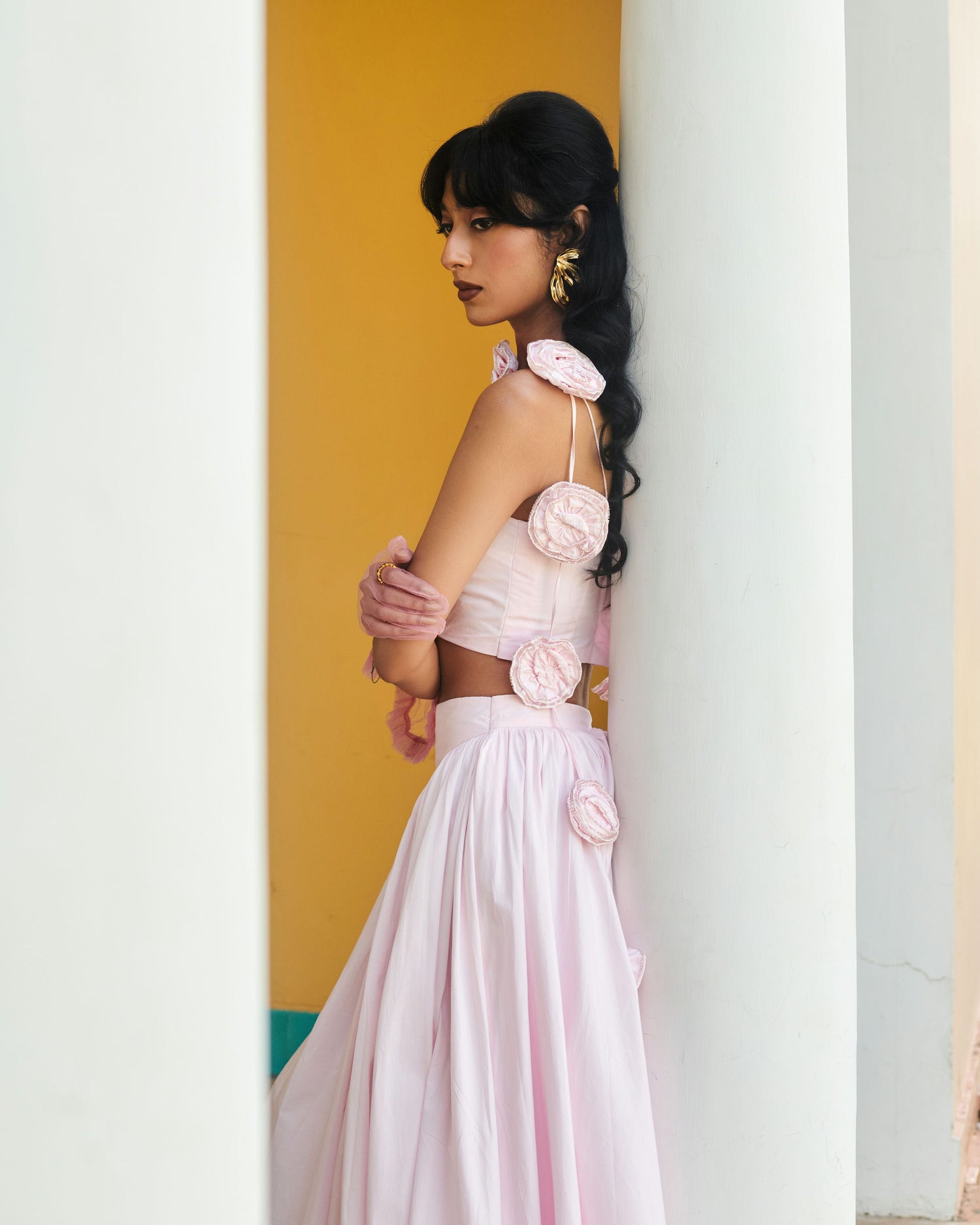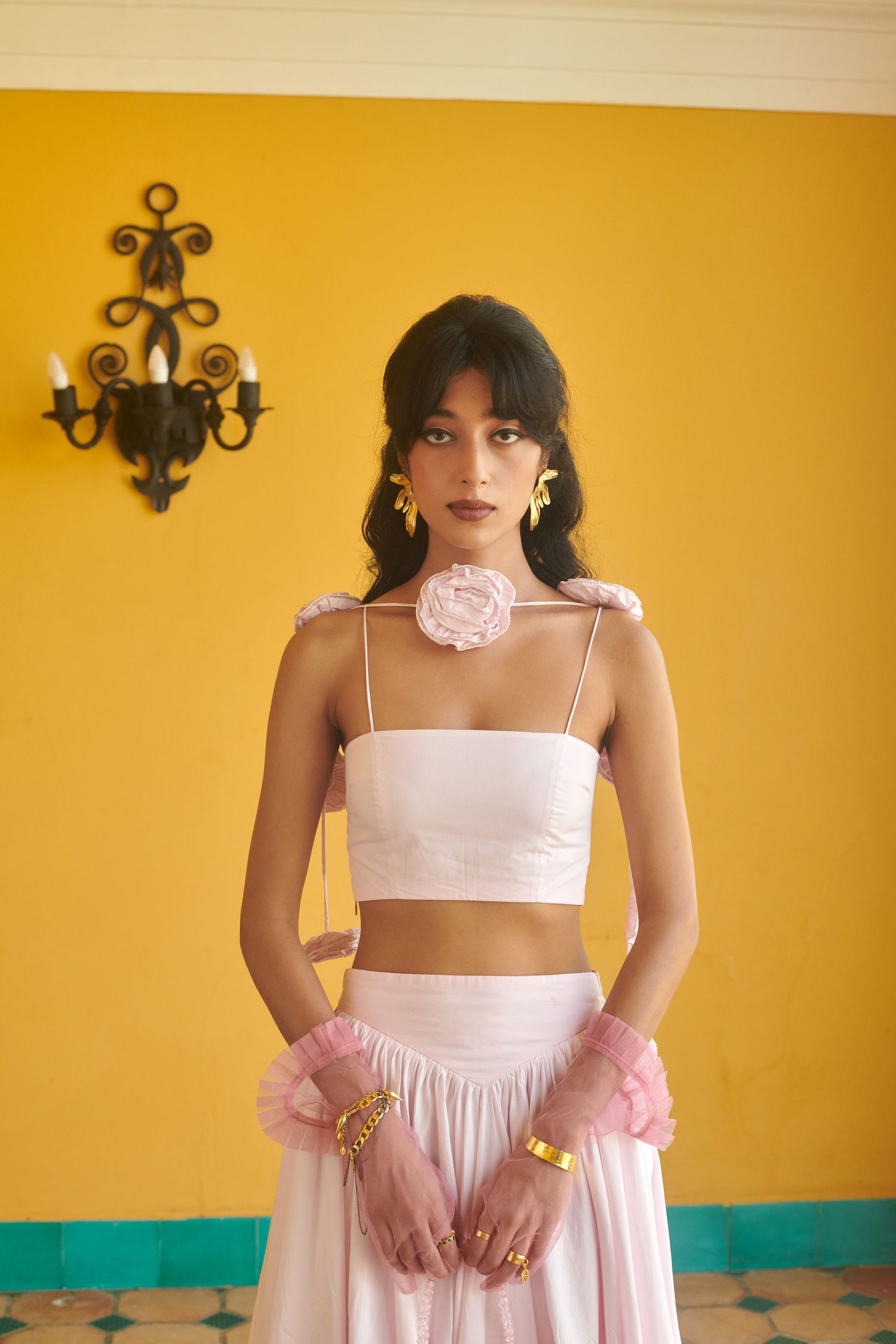 Crop top featuring our Gilded Florets in Blush Pink.
