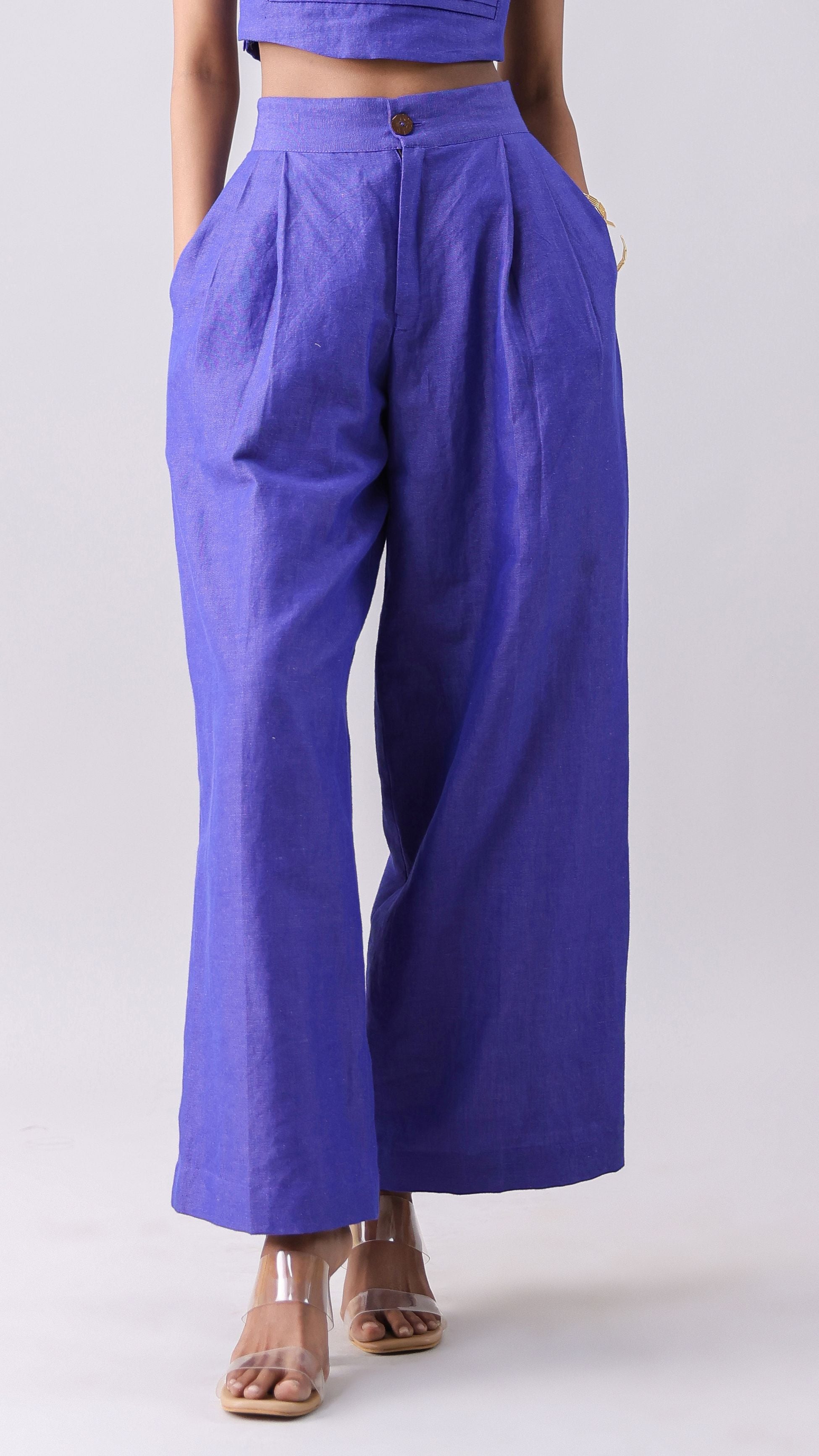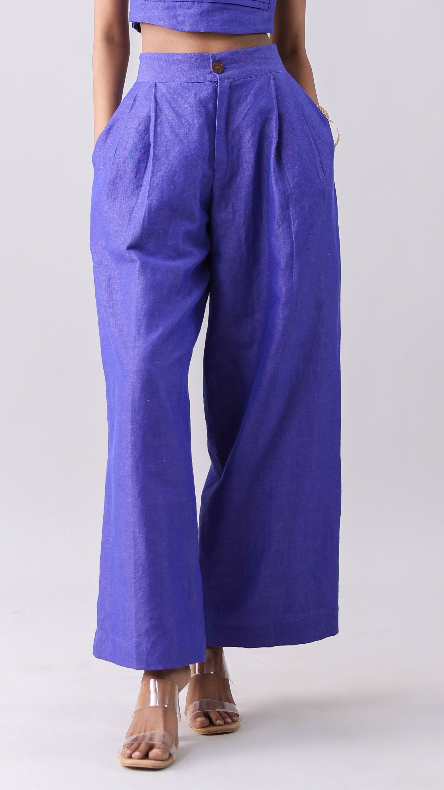 Korean style wide pants with pleats on the waist. Side pockets, zip fly & button fastening.