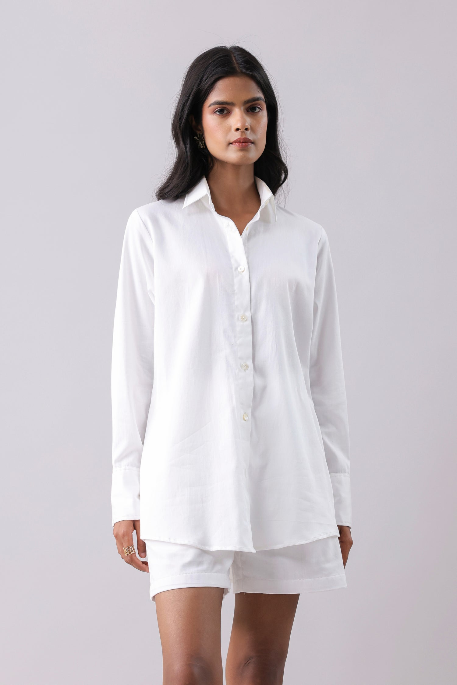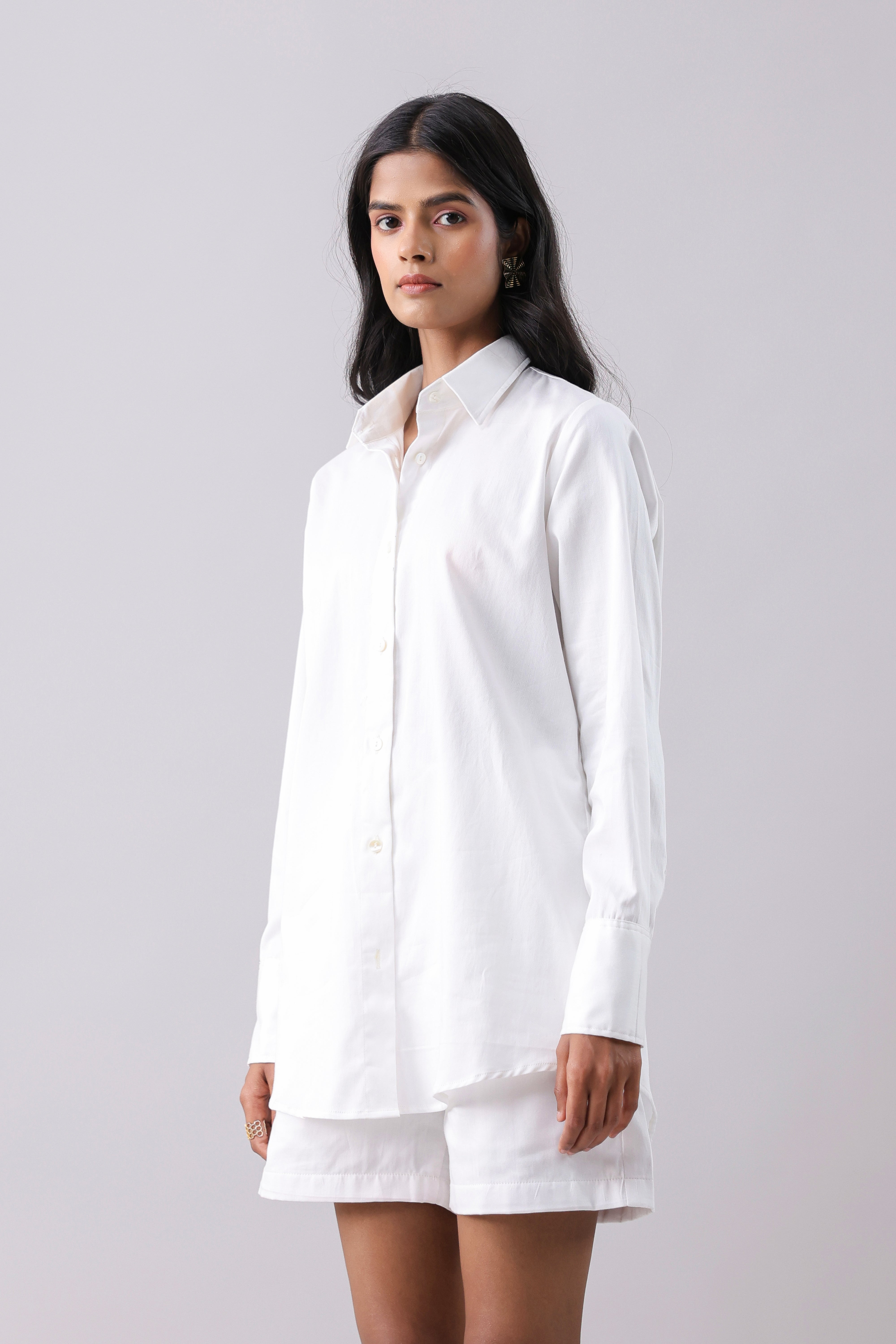 White regular fit shirt. Featuring a regular collar and long sleeves, button-up front.
