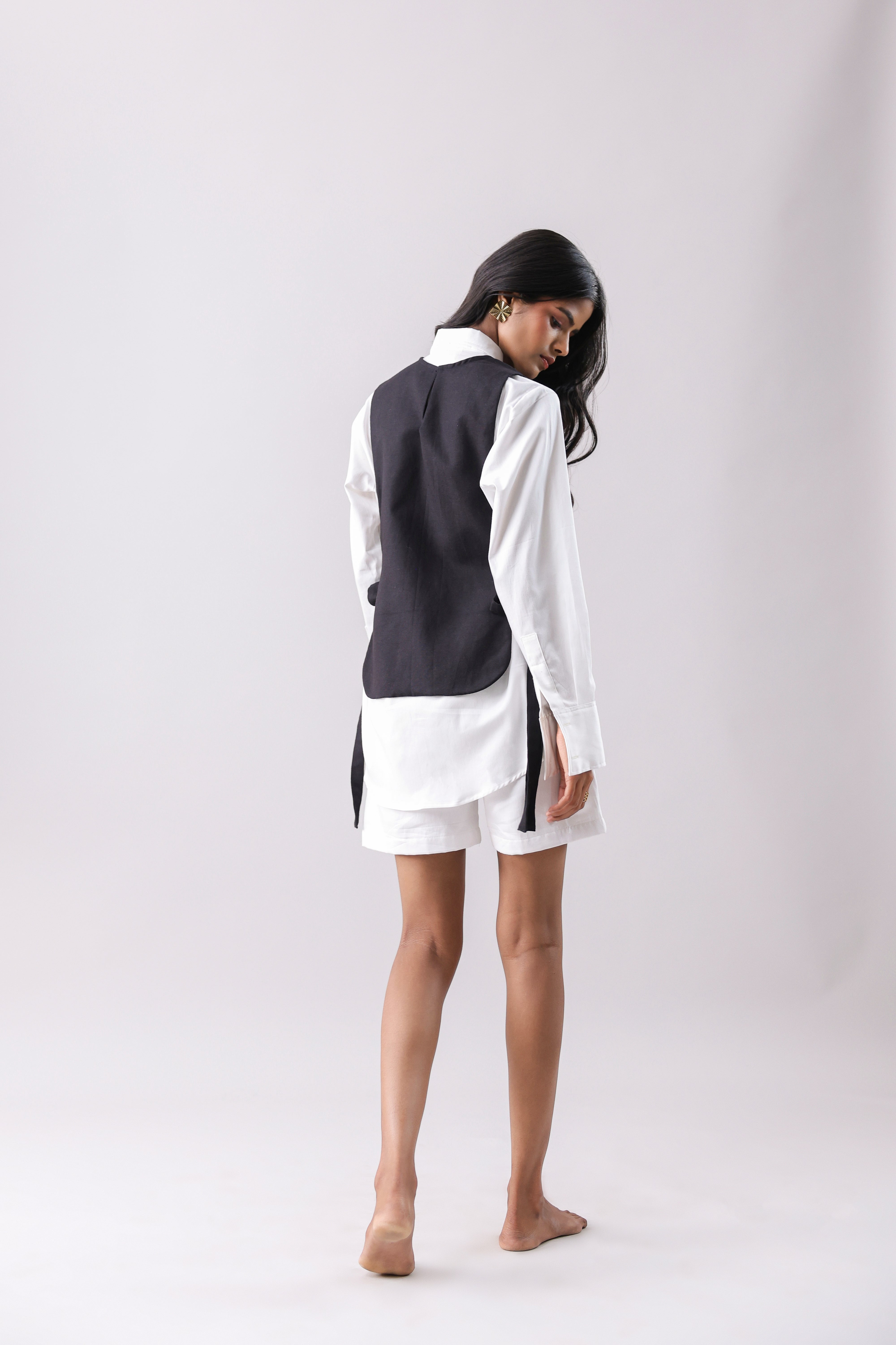 Regular white shorts, with side pockets, zip fly & button fastening.