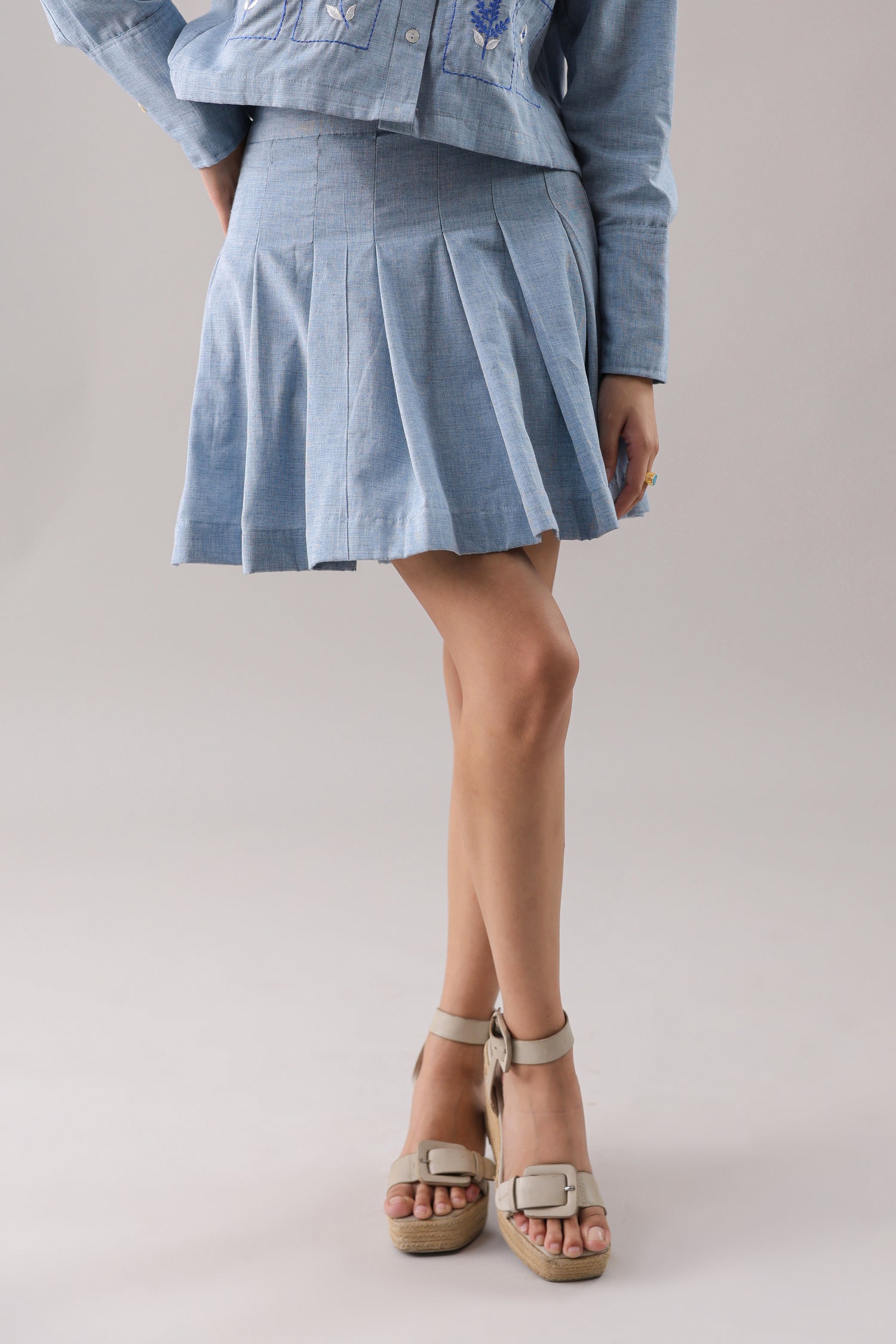 Pleated mini skirt.