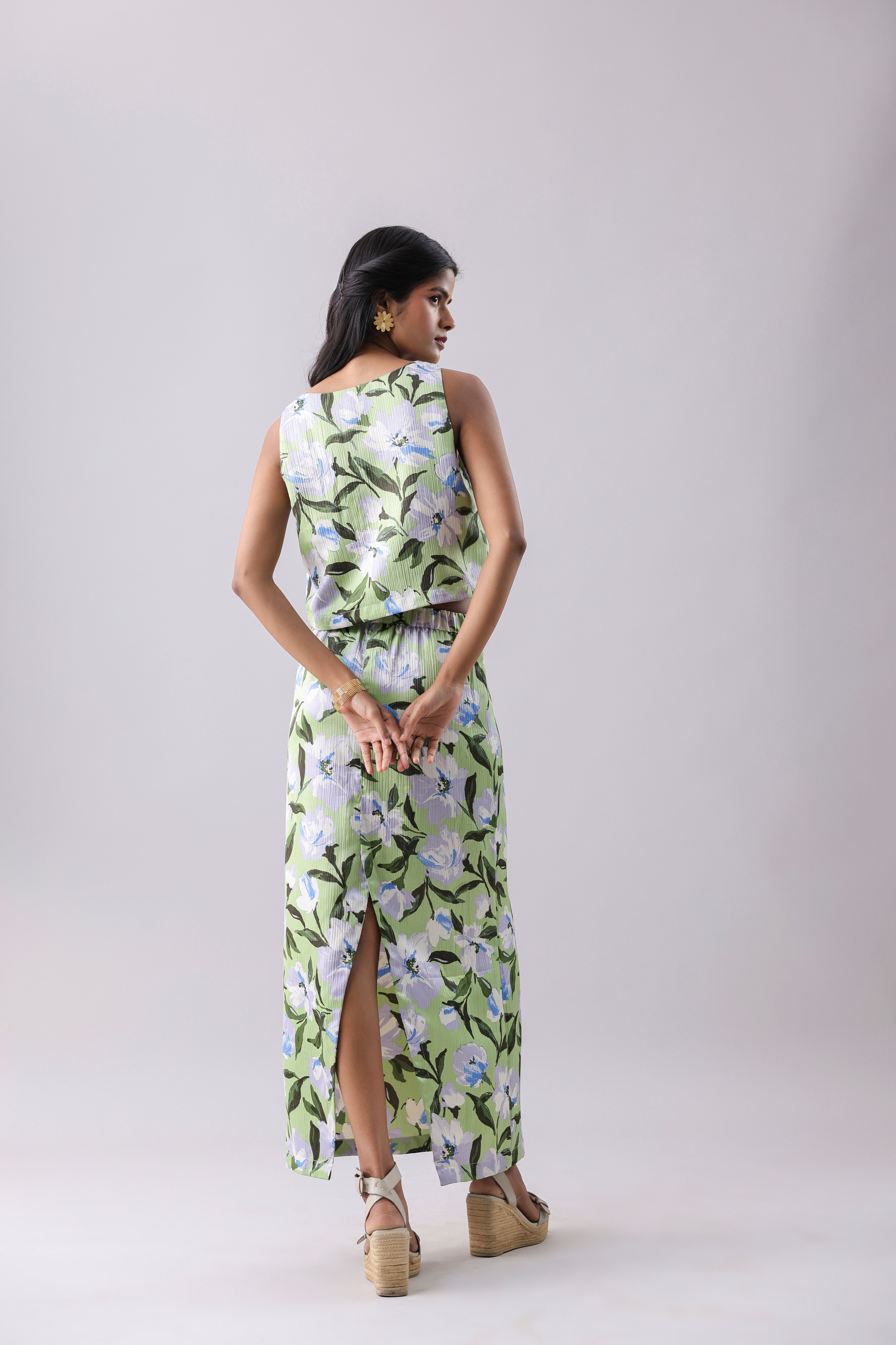 In the photos we have Tanvi wearing the co-ord set- size S, height 172 cm.
