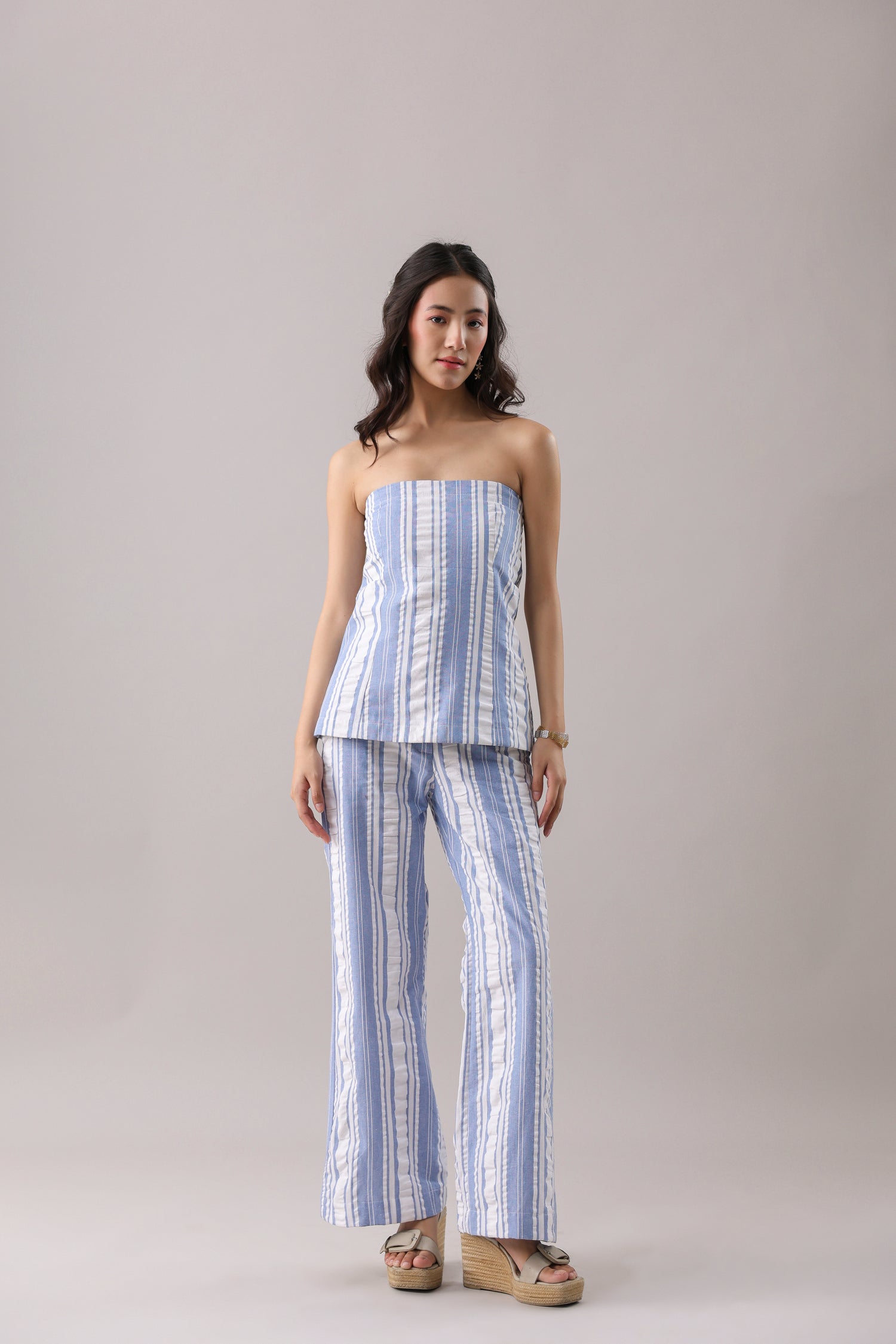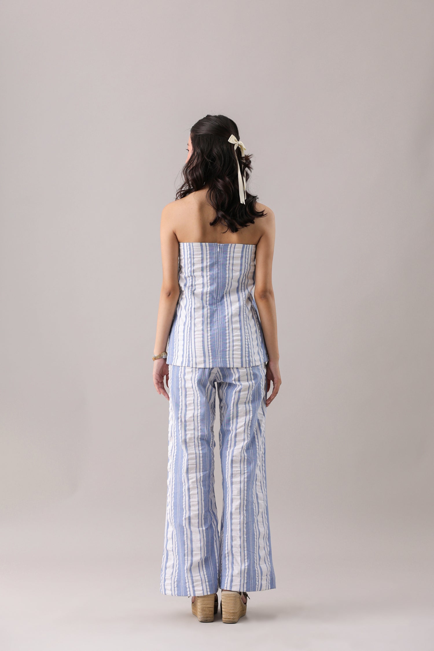 Bandeau top with a straight neckline and off-the-shoulder design, lined with the same fabric. Concealed zip fastening at the back.