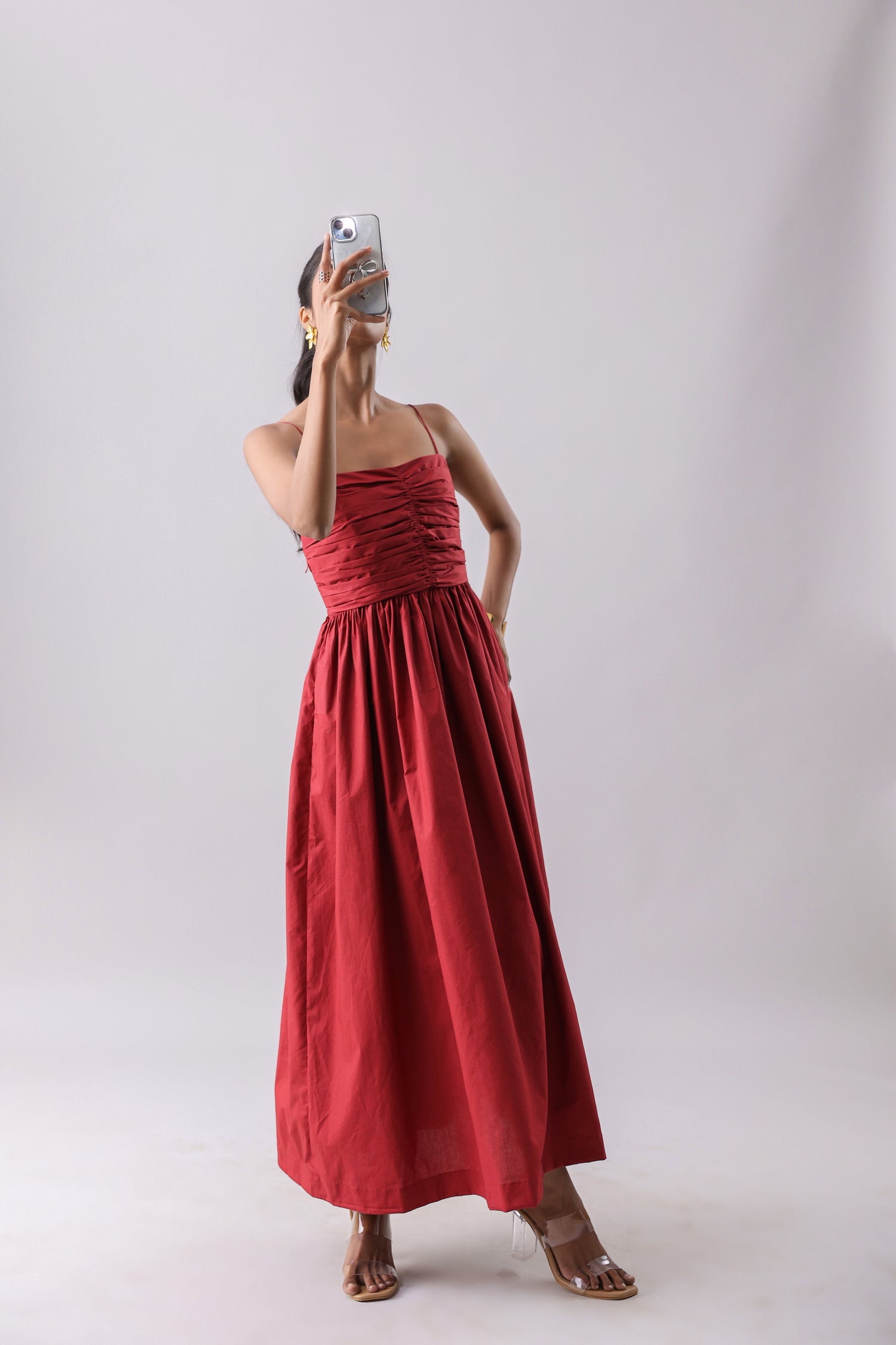 Slip maxi dress with a ruching detail, the perfect fit and flare look for any kind of occasion. Fancy dressing made easy with comfort fabric.